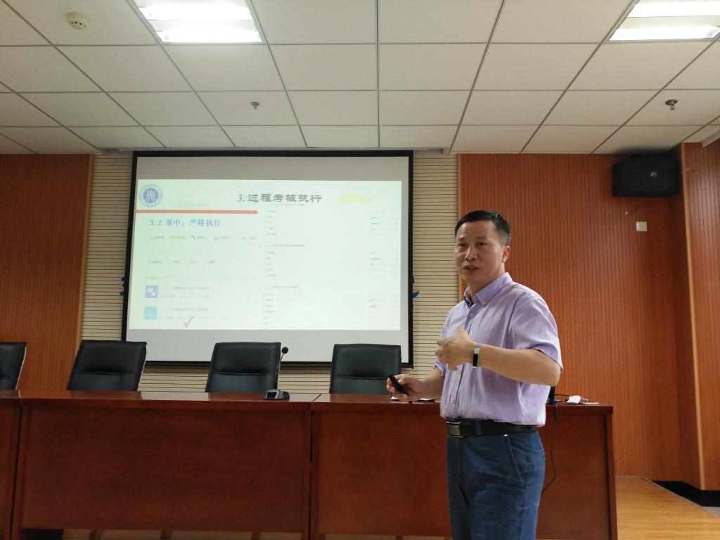 2018年7月3日下午,经济与管理学院在15301学术会堂举办了主题为“教学过程考核”的教学沙龙,经济与管理学院教学副院长彭佑元做主题发言,学院全体教师参加。